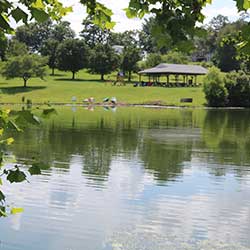 A picturesque setting for company gatherings or family picnics, featuring a bonfire pit, a small playground, and a well-stocked fishing pond.