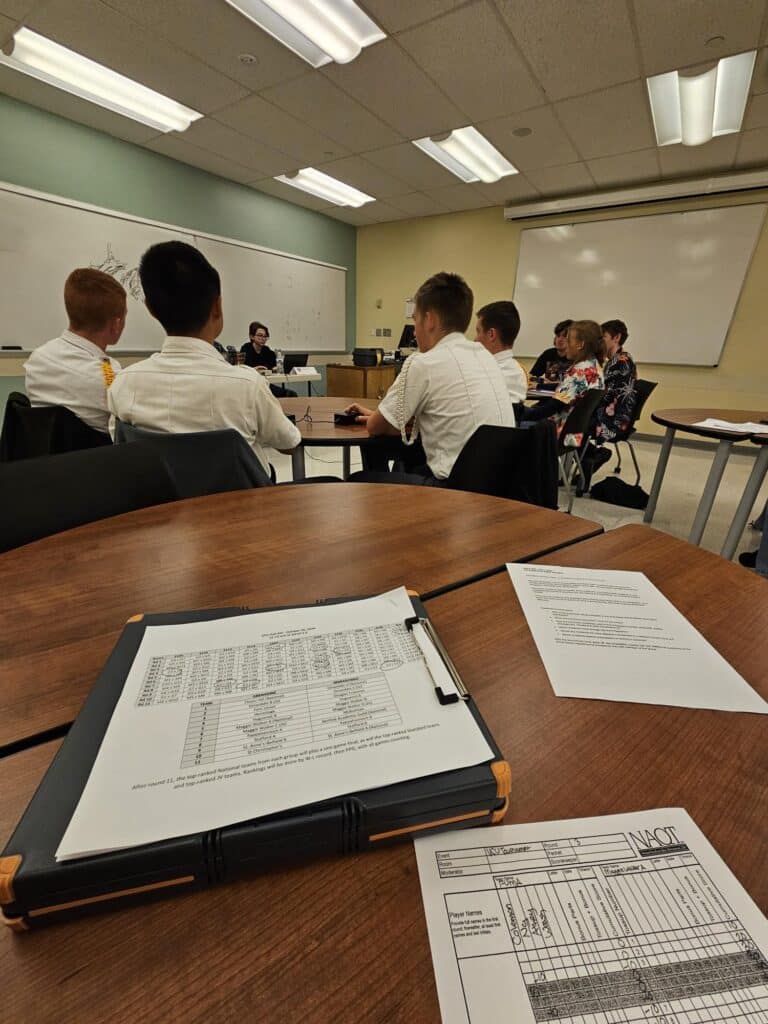 The team was led by seniors Joseph Athey (team captain), Malachi Walsh, and Mason Ng, along with junior Nicholas Coleman. Coleman’s exceptional play earned him an All-Star designation as he averaged 106 points per round during the round-robin matches, tying for the fifth highest individual average among Standard-Level players in the tournament.
