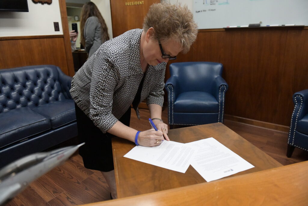 Fork Union Military Academy’s College Placement & Academic Services Department continues to open doors for cadet success through articulation agreements with colleges and universities across the country. Today, the Academy expanded these opportunities as CAPT Mark Black signed a Guaranteed Admission Agreement with Chowan University. CAPT Black welcomed Chowan University President Dr. Rosemary M. Thomas to campus to commemorate the new partnership.